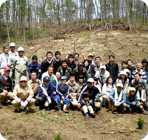 ところが、そこに植えられていた木々は樹齢50年以上を経過し、台風による倒木などで荒廃していました。そこで、専門機関のご指導のもと「自然環境を最大限に生かした整備」として、倒木を伐採し、新たに苗木を植樹する「森づくり」を進めています。