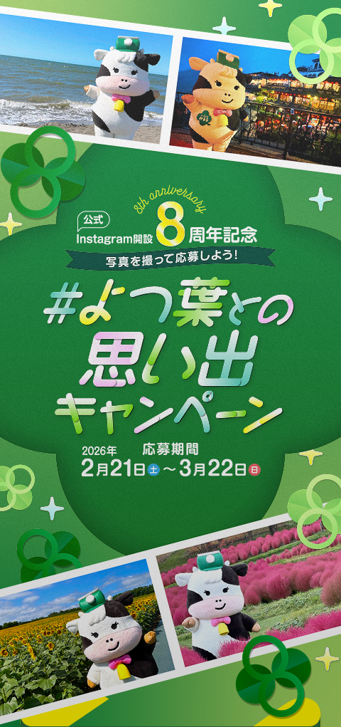 よつ葉乳業株式会社は、本キャンペーンの応募により応募者に生じた一切のトラブル・損害(直接・間接を問いません)等について、如何なる責任も負いません。